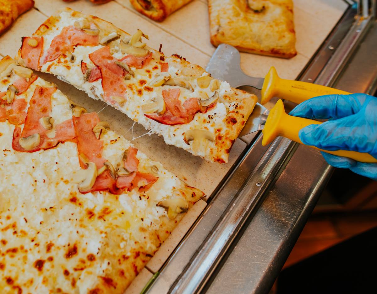 mix cheese, zio peppe sauce, ham, mushrooms, fresh tomato